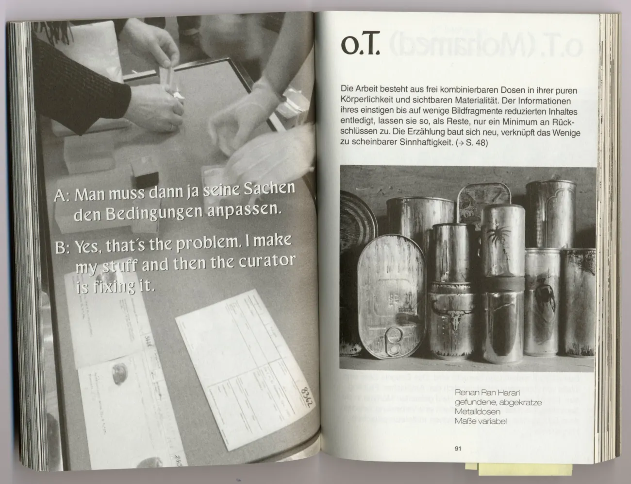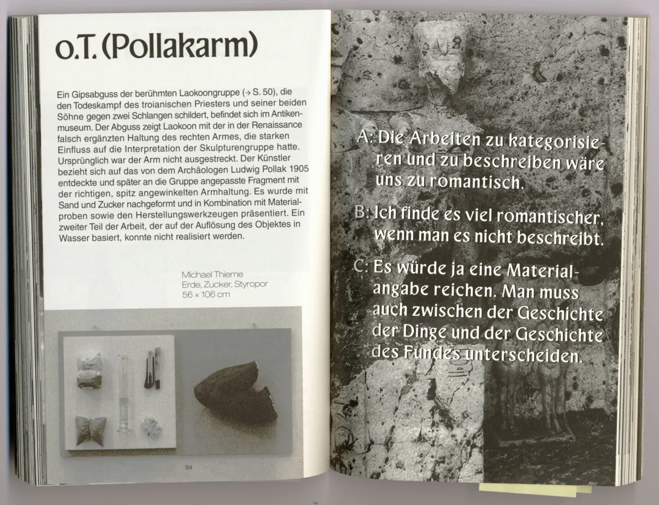 Der Katalog ist durchsetzt von kurzen Dialogen, die im Zeitraum des Seminars von Marie Lautsch und Patrick A Müller protokolliert wurden.