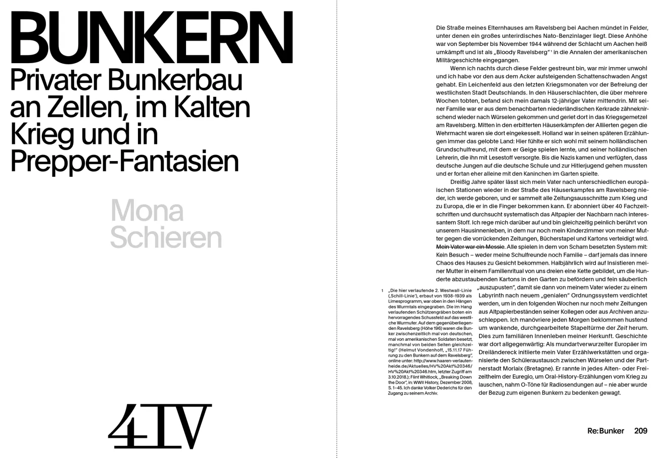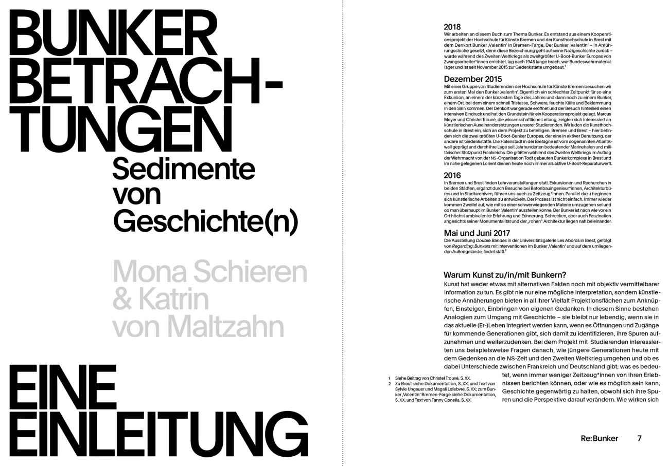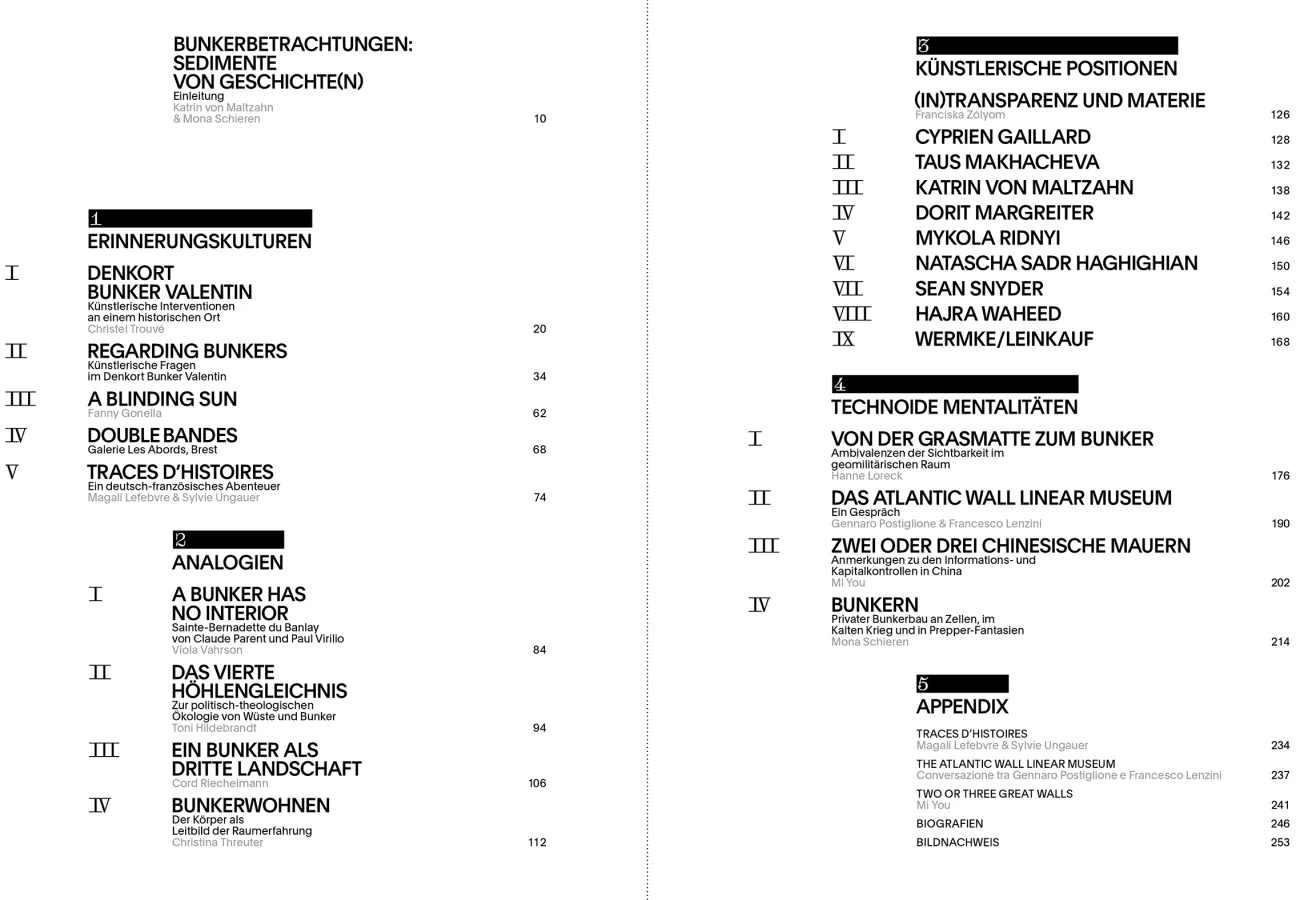 As secured military installations bunkers are meant to provide protection or to act as combat units. During the Second World War, the bunkers built by national socialists - including the fortifications on the Atlantic Wall - were meant to secure military successes. In addition to these functional aspects, the term "bunker" opens up a long way larger field of connotations and semantics. This book gathers contributions from Philosophy, architecture, media, history, arts and cultural studies as well from the art itself. Central to this is the role of historic bunkers as places of remembrance is the bunker 'Valentin' in Bremen-Farge. Planned by the Nazis and built by forced laborers, the bunker is today a memorial site in political education as well as social and cultural exchange. This book refers to present and future abstract as well as concrete Bunkerphantasies, about the mechanisms digital foreclosure in China or life-world phenomena of "bunkering", such as they are familiar in the prepper scene.
