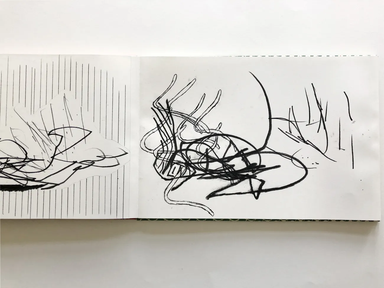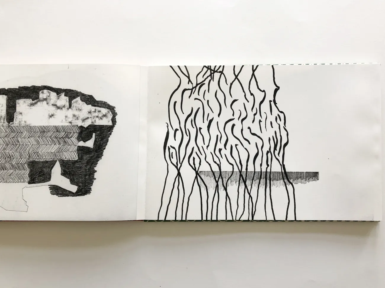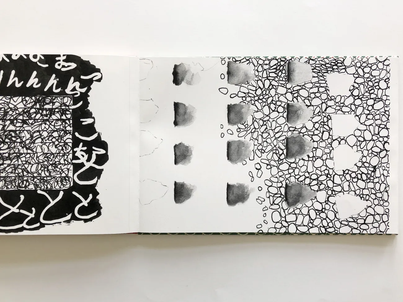 The book is based on 48 collaborative drawings made in February/March 2020 in David's studio in Nagasaki and Katrin's studio in Berlin.