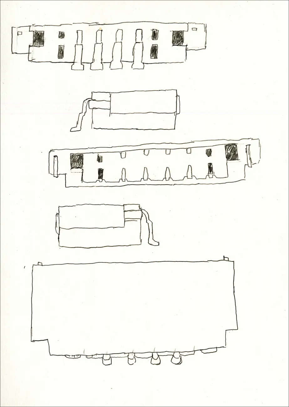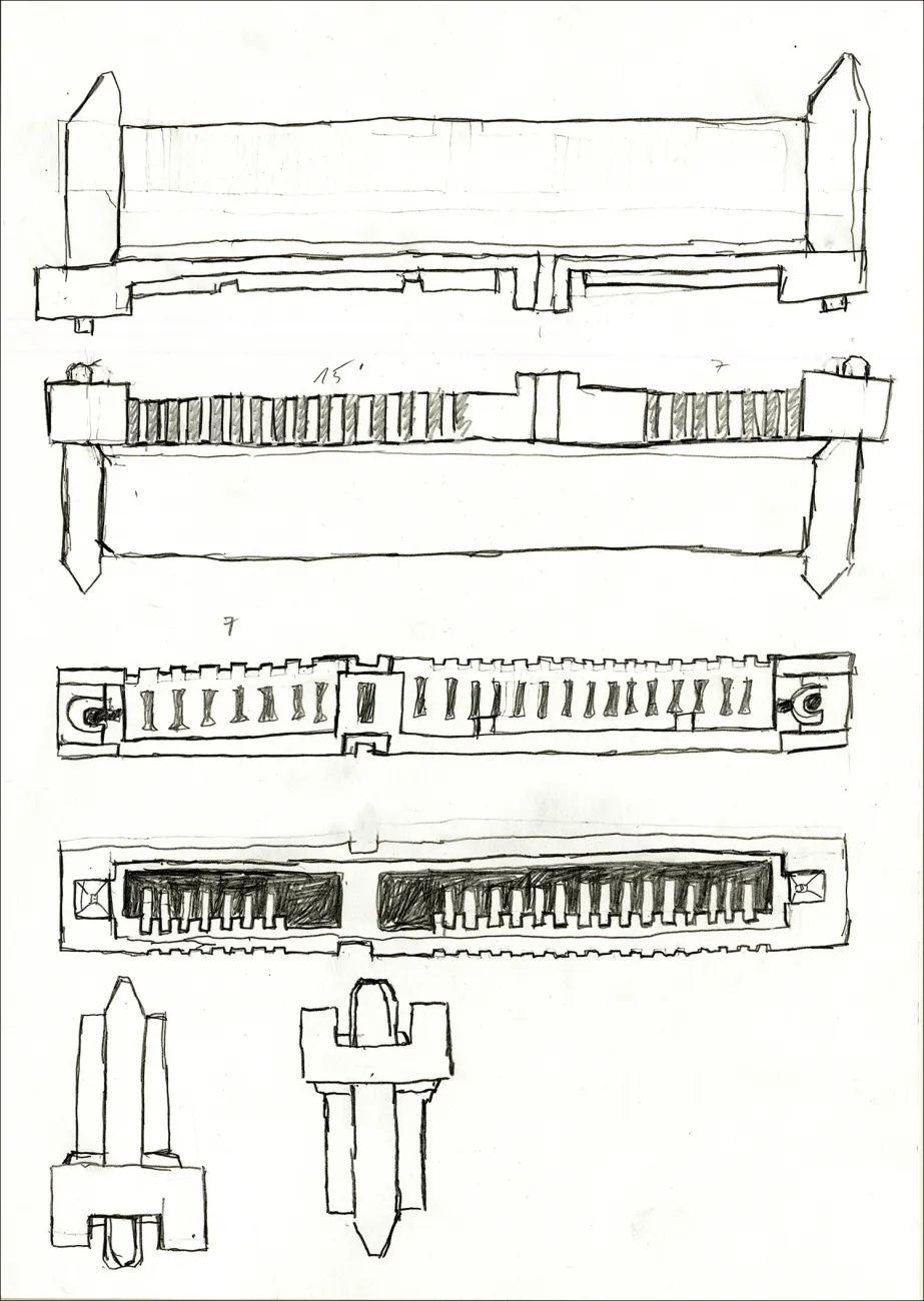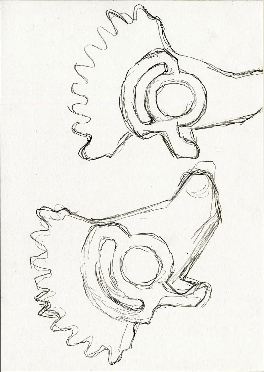 The six bronze casts are based on drawings I made of individual parts of my disused computer. They refer to my ealier project "Models", which consists of about 70 objects in burned clay. For this work I swapped a bottle of red wine for a 9-year-old computer. Then I took the hard drive apart and carefully studied each component in a very physical sense. I solely focused on the form of each part – not their function – first by making a “Model drawing”, then by remodeling it in rough clay, much enlarged.
