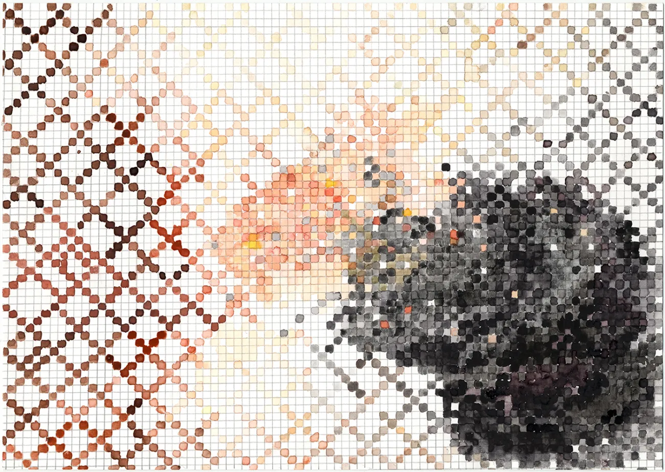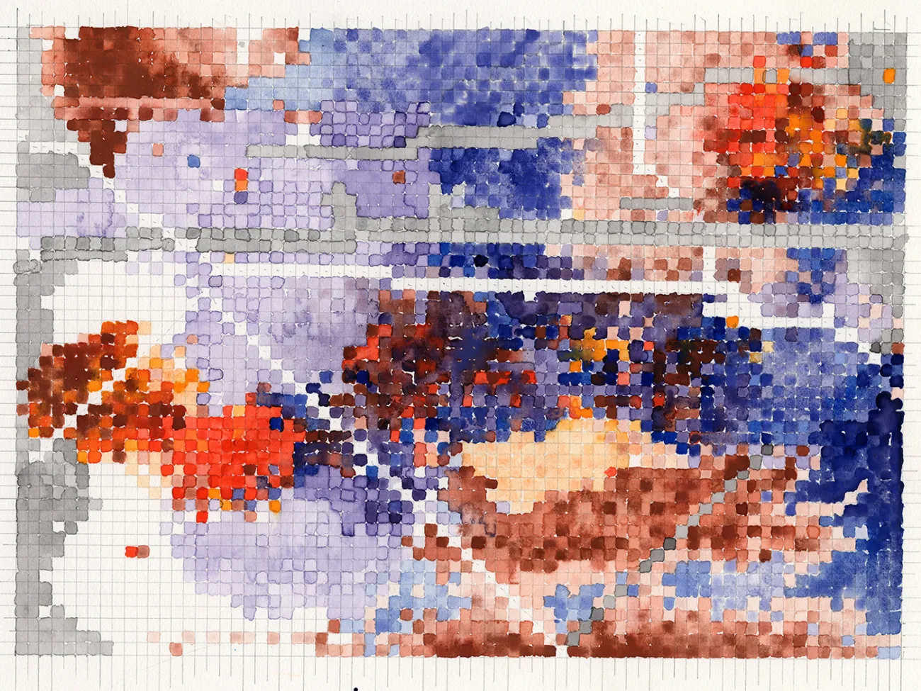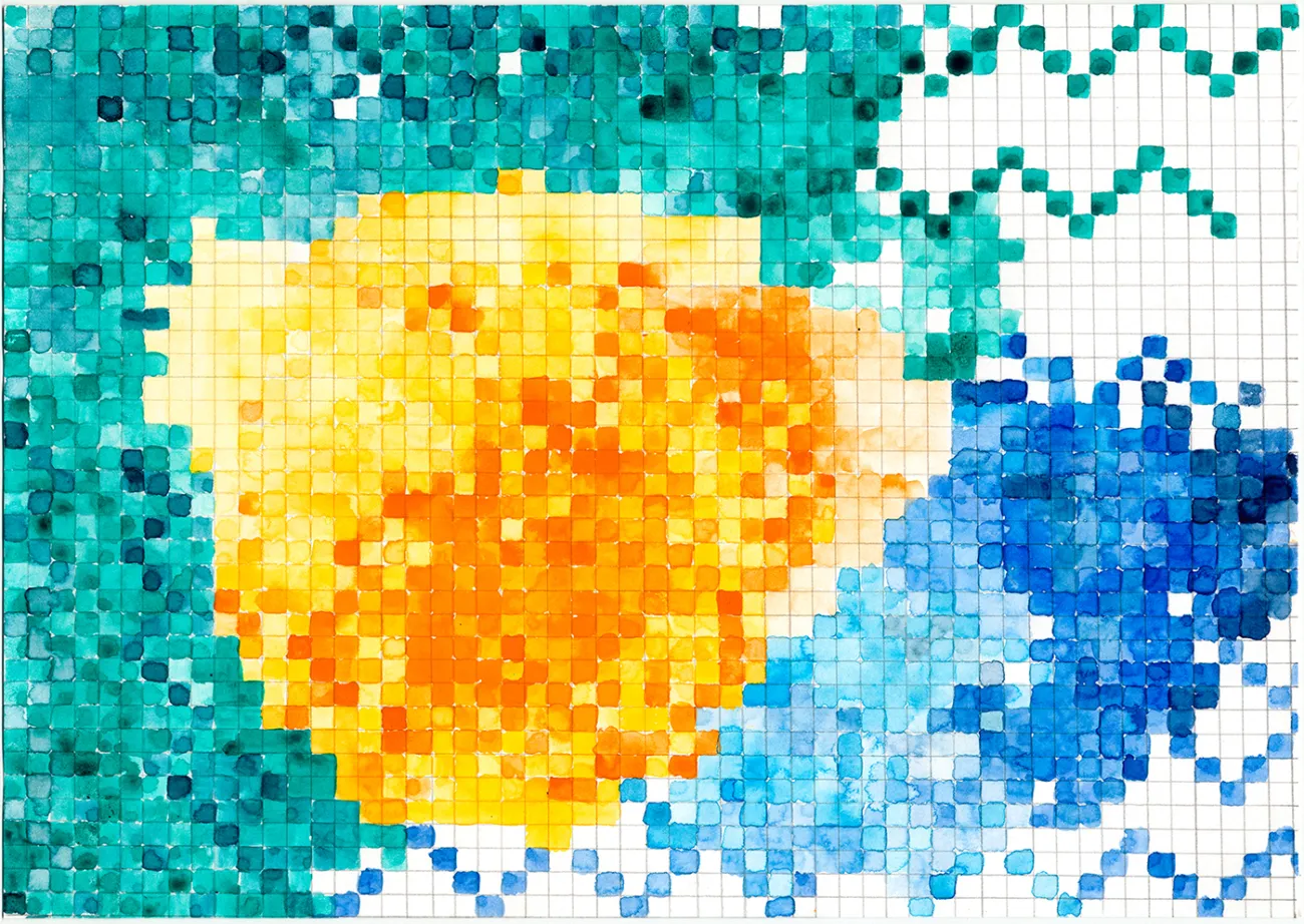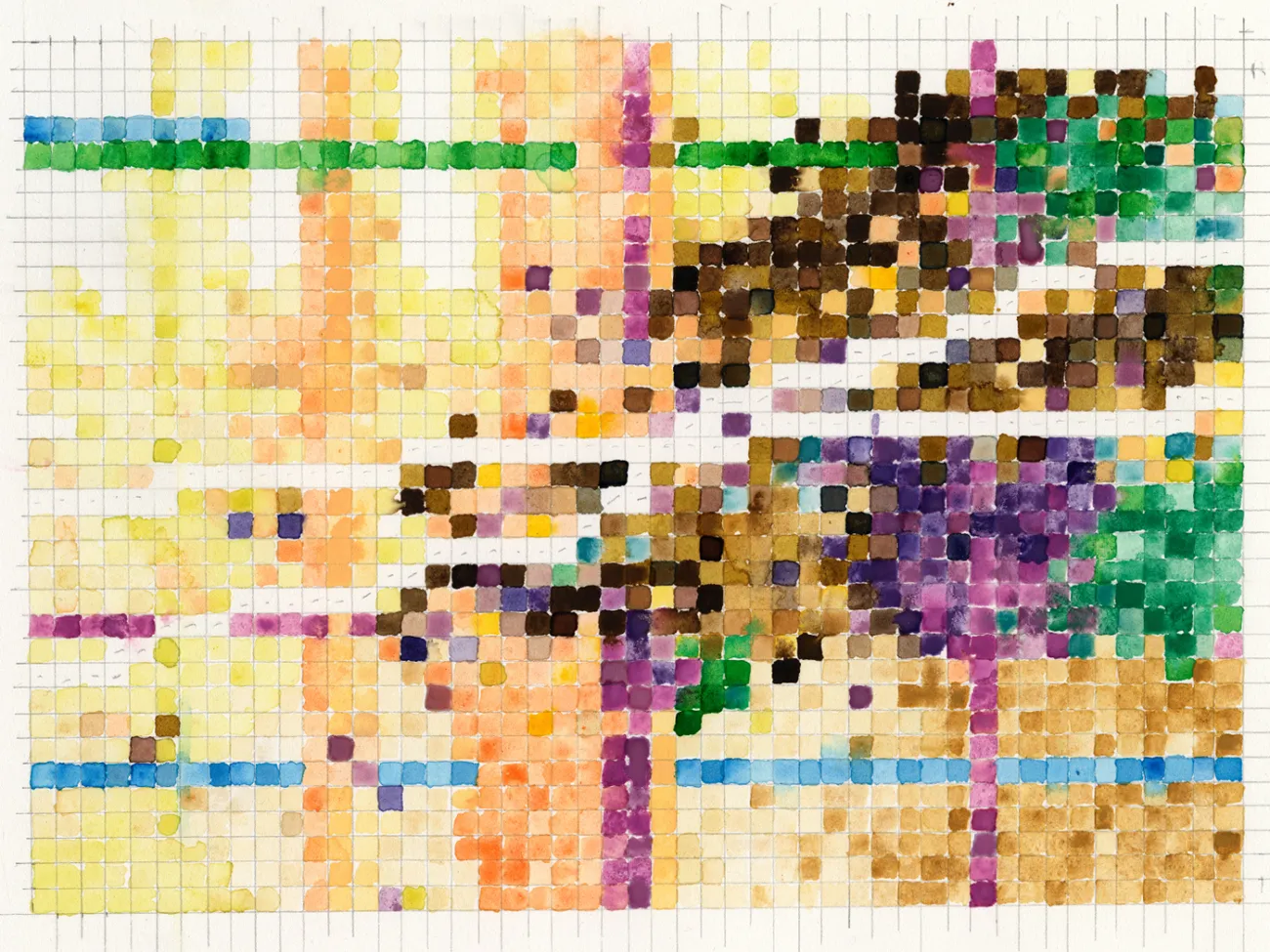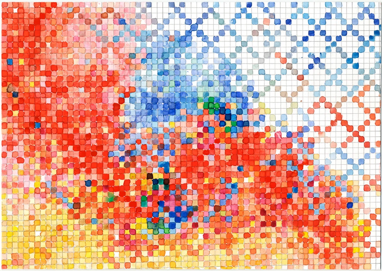 Grids drawn in pencil on paper + watercolor, each 21 x 29,7cm .