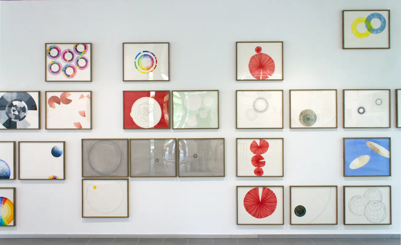 “Charts '64” derived from my own statistical evaluations of the archive material of “documenta 3” (1964). I aimed to realize a work based on questions asked of the archive, from my individual perspective as a person and an artist. As for me, each documenta exhibition reflects a kind of global view of the art of its time. I decided to create a kind of visual cosmos. I chose the pie chart as the basic form for my drawings. I worked through the material, collected questions, followed up traces.